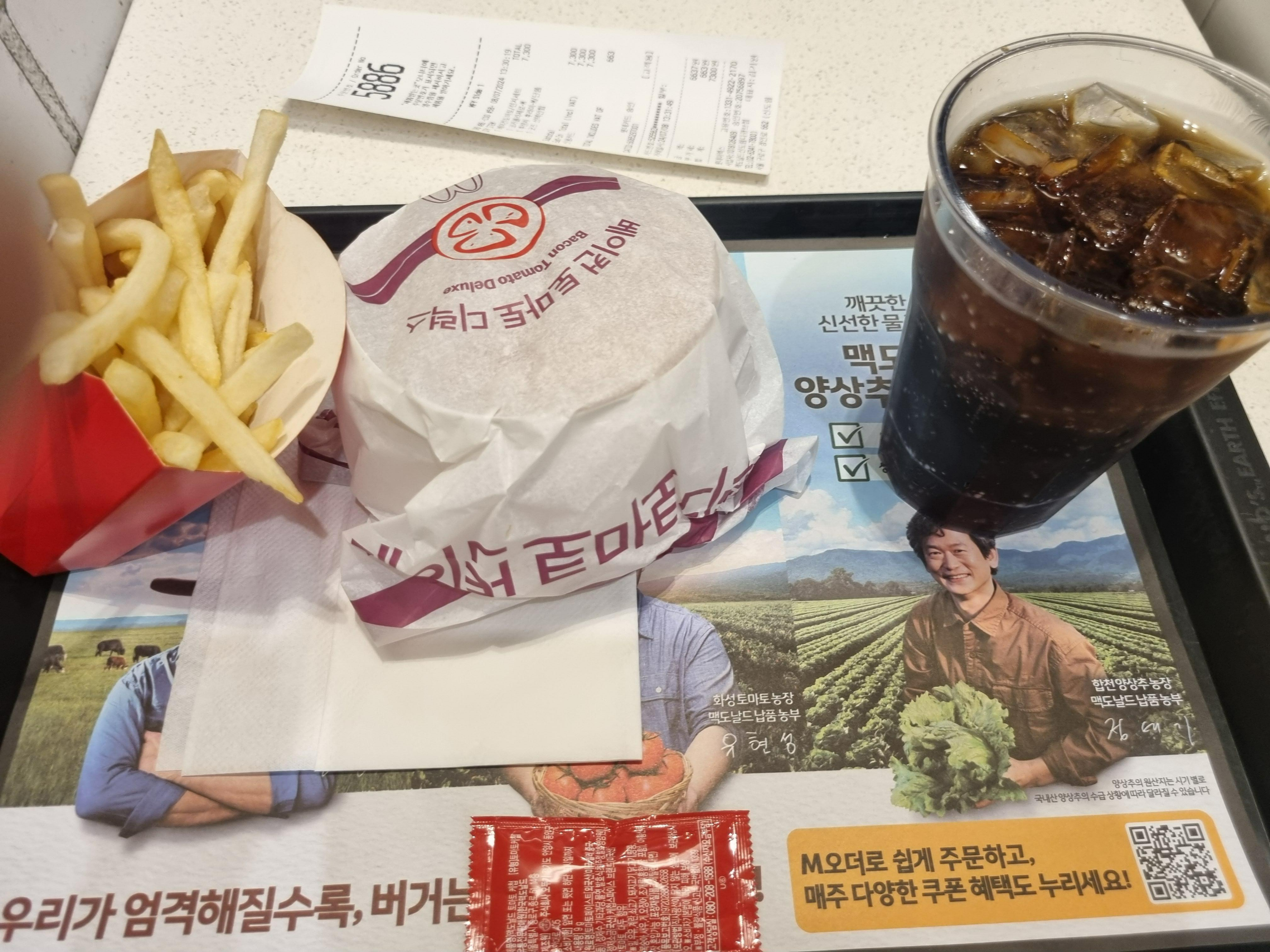 끝나고 너무 힘들어서 점심으로 맥도널드에서 베이컨 토마토 디럭스 세트를 먹었다. 오랜만에 먹으니 너무 맛있었다..><