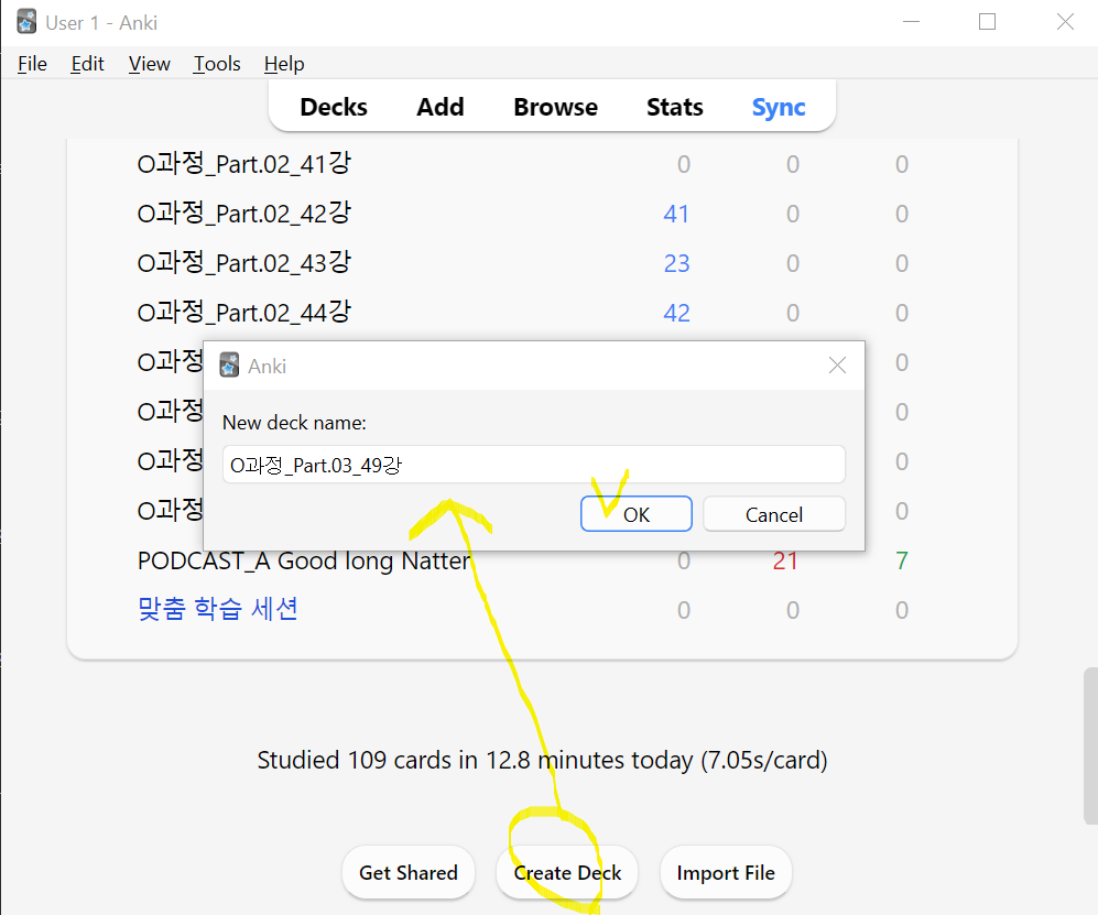 3) PC에서 Anki 프로그램 열어서 Create Deck