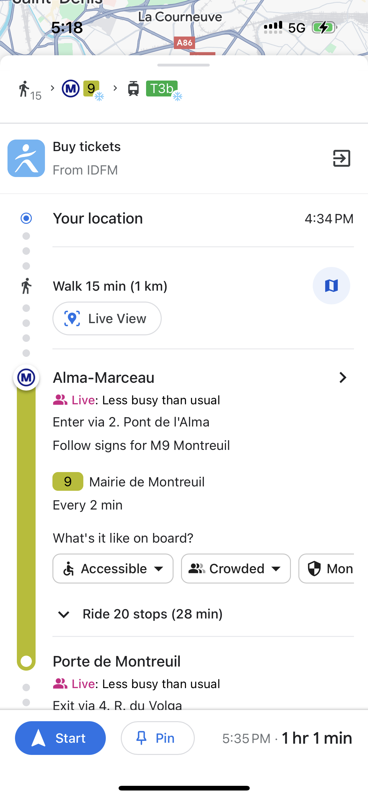 구글맵을 한국에선 잘 안 써서 몰랐는데, 위 사진의 맨 밑에 있는 start버튼인가? 누르면 내가 가고 있는 경로를 추적해 줘서 지금 내가 어디까지 왔는지? 그런 거를 위치기반으로 표시해 줘서 너무 편리하고 안심이 됐다. 내가 지하철이나 트램 안내 음성이나 전광판을 놓쳐도 구글 맵 어플에서 내가 지금 어디까지 왔는지, 어디에 있는지 알려줌..!