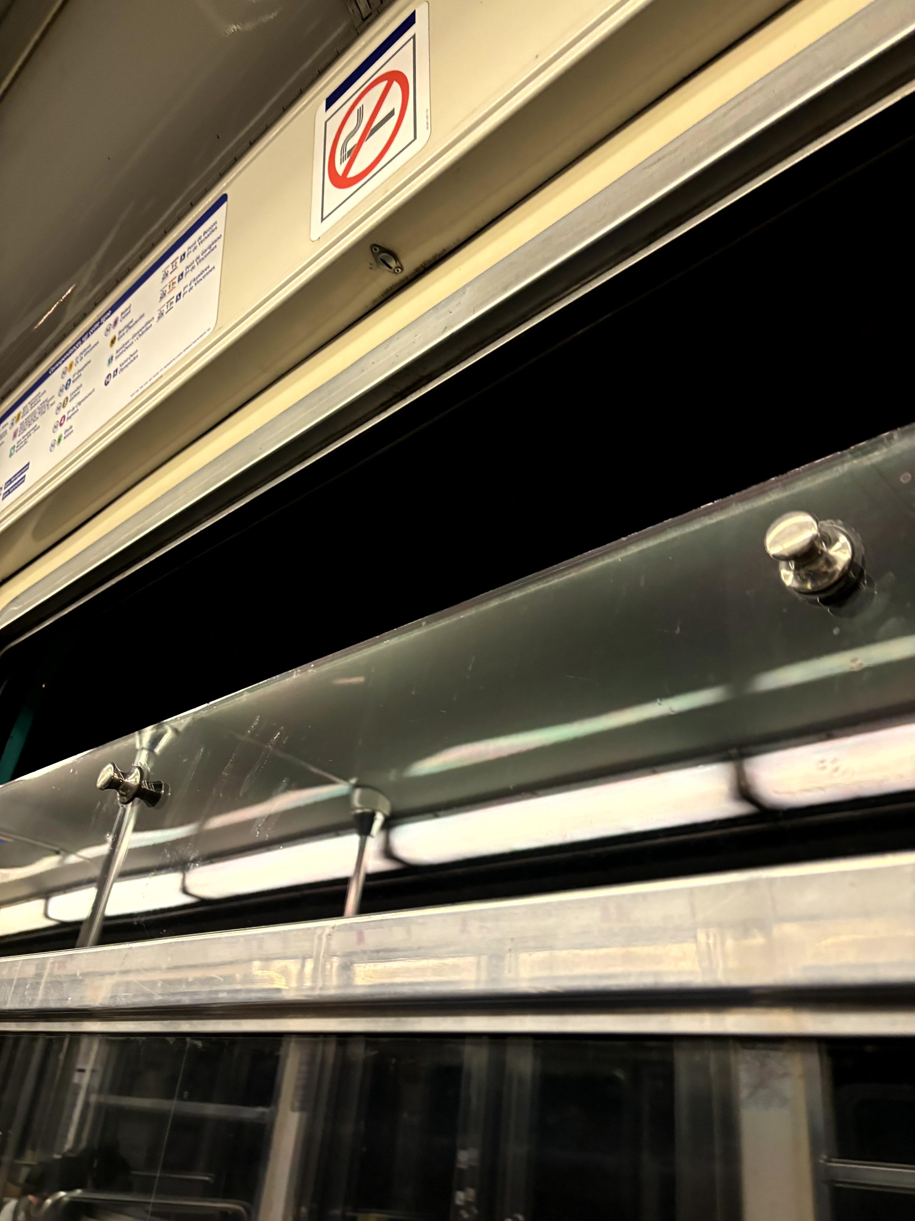 지하철 내부도 찍어봤다. 요긴 창문이 열려 있었는데, 지하철마다 조금씩 다른 것 같다. 이후에 탔을 때는 요렇게 창문 열린 지하철을 잘 못 본 것 같다.