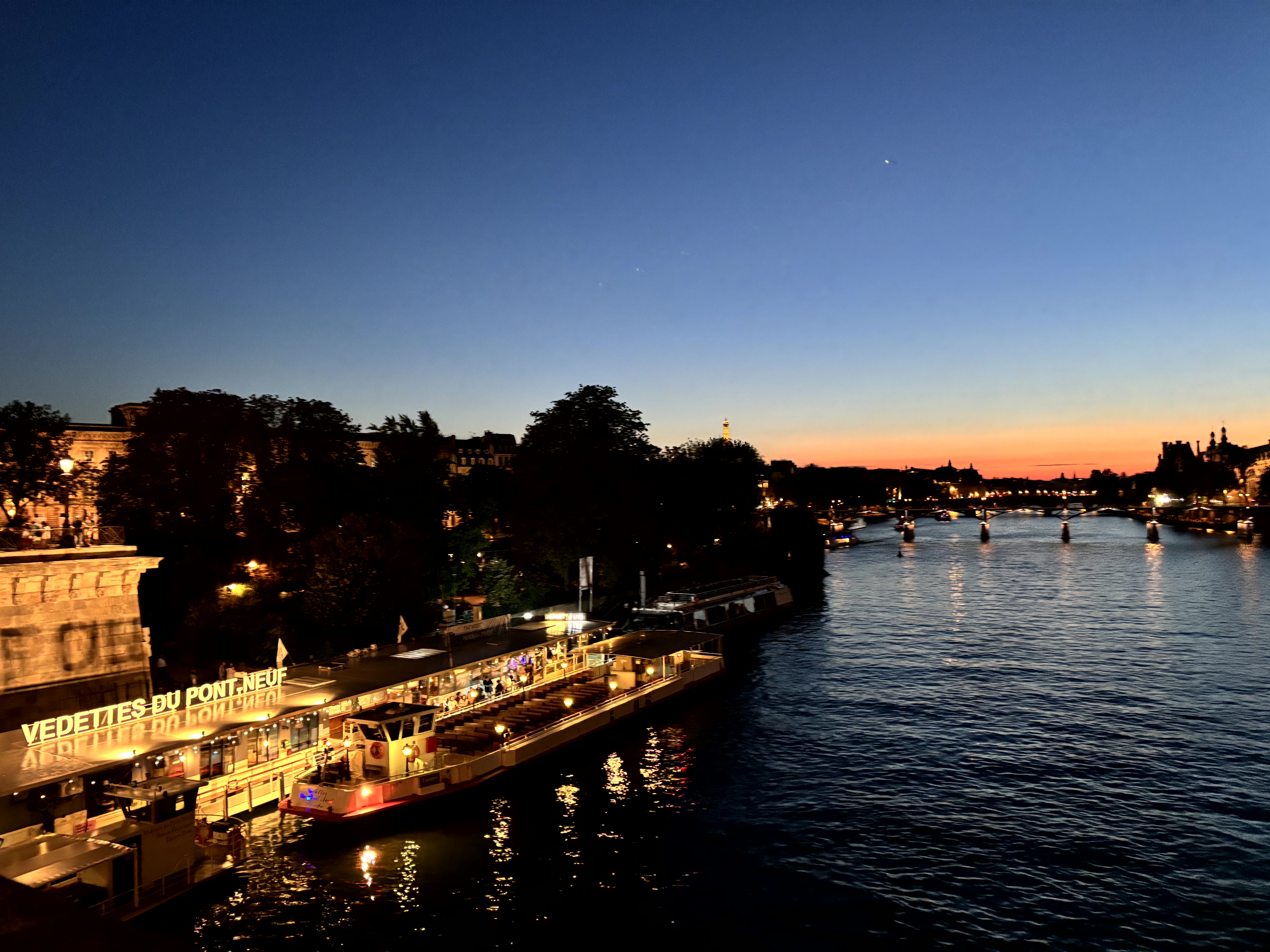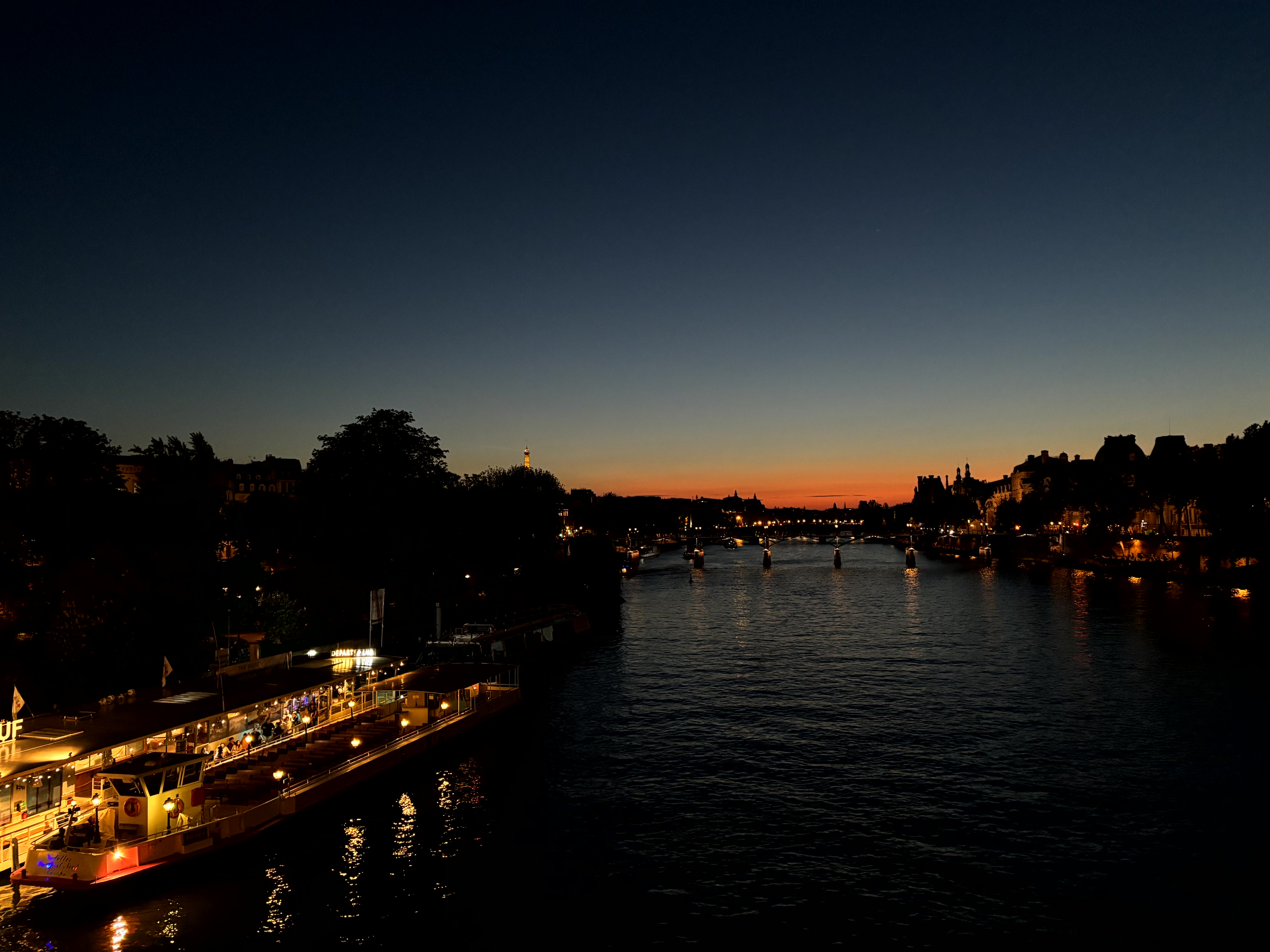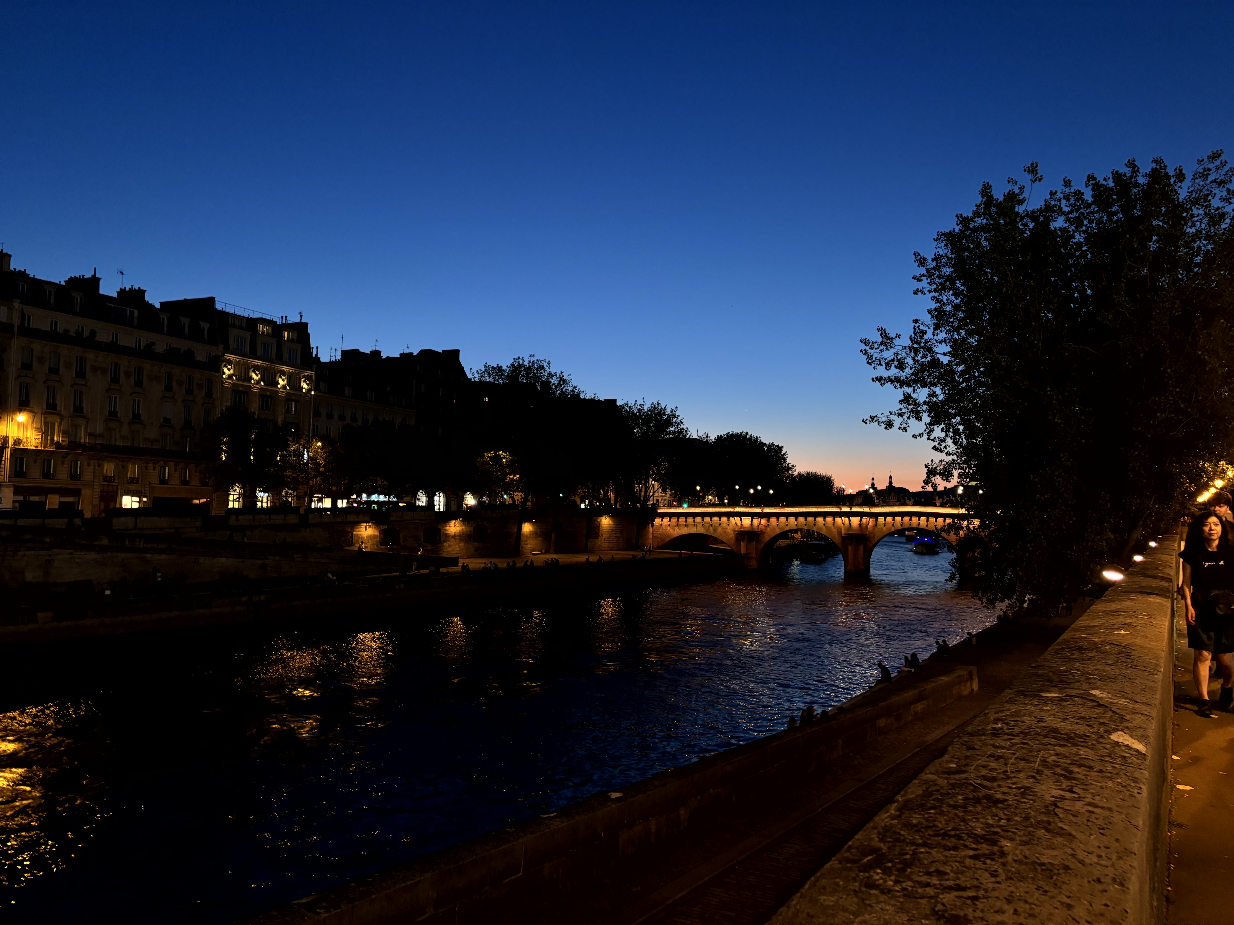 사진을 다 찍고 다음 장소인 루브르 박물관까지 걸어서 이동했다. 이동하는 동안 해가 점점 빠르게 지기 시작했는데, 강가에 비친 주황빛 조명이 정말 아름다웠다.