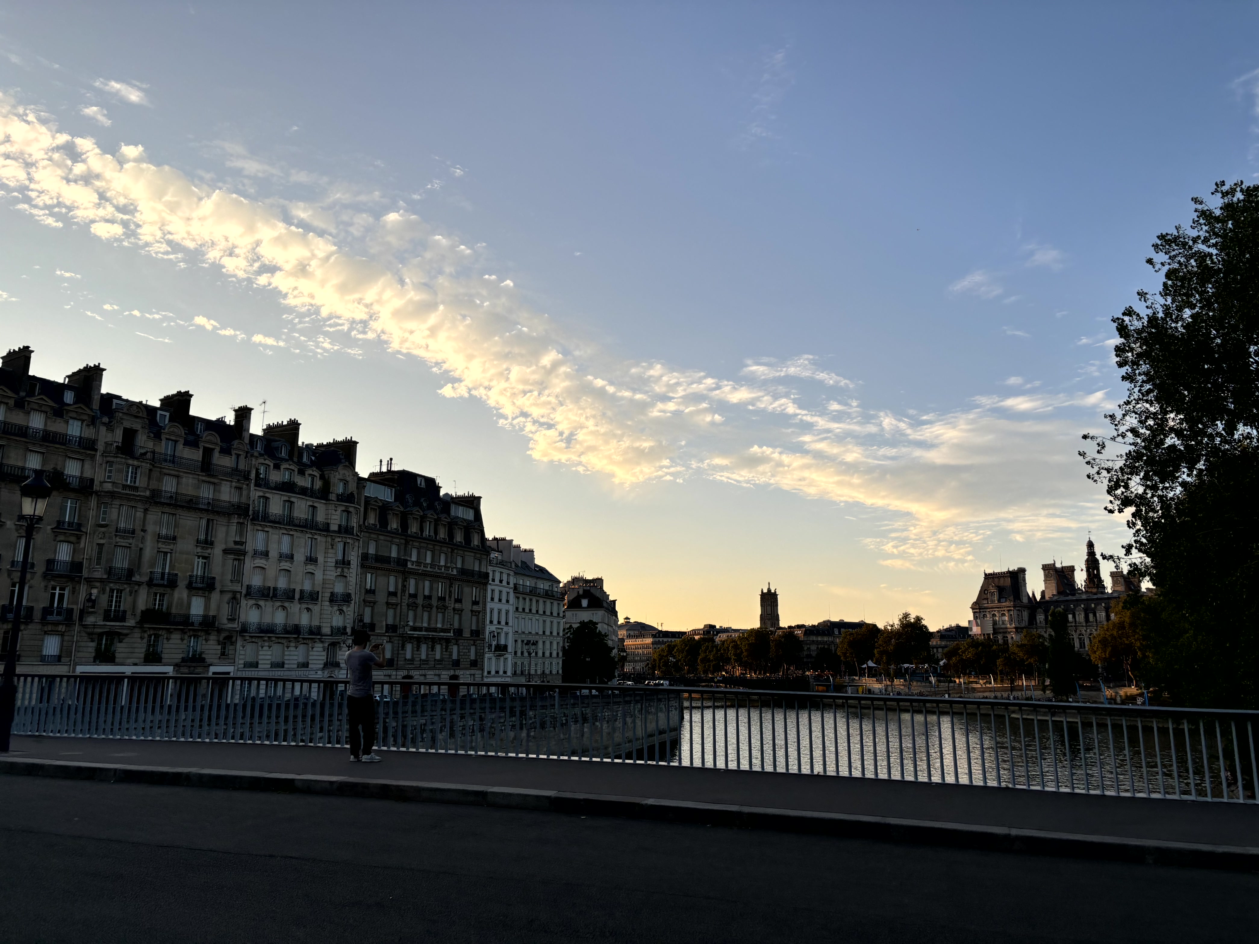 나는 아까 처음 모임 장소에 젤 먼저 도착해서 첫 타자로 스냅사진을 찍게 됐다. 대충 다 찍고 나서 다른 사람들 기다리면서 새로 바꾼 아이폰으로 파리의 해 질 녘을 빠르게 담았다.