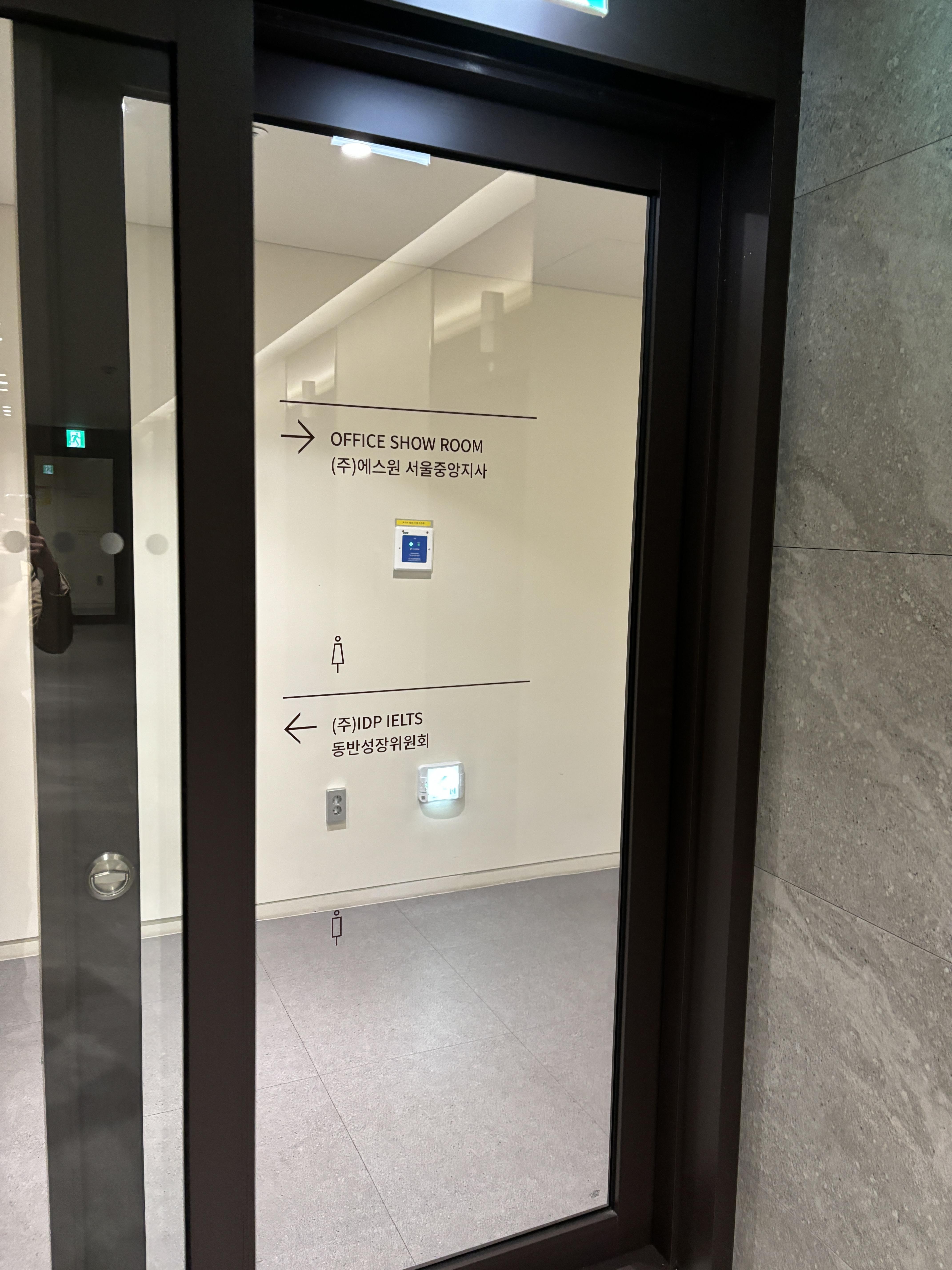 밖에서도 IELTS 시험장 문이 보인다. IELTS 시험장은 생각보다 작다. 내부 사진은 까먹고 안 찍어서 없는데...ㅎㅎ 들어가면 데스크 직원분이 안내해 주는 대로 따라 하면 된다.