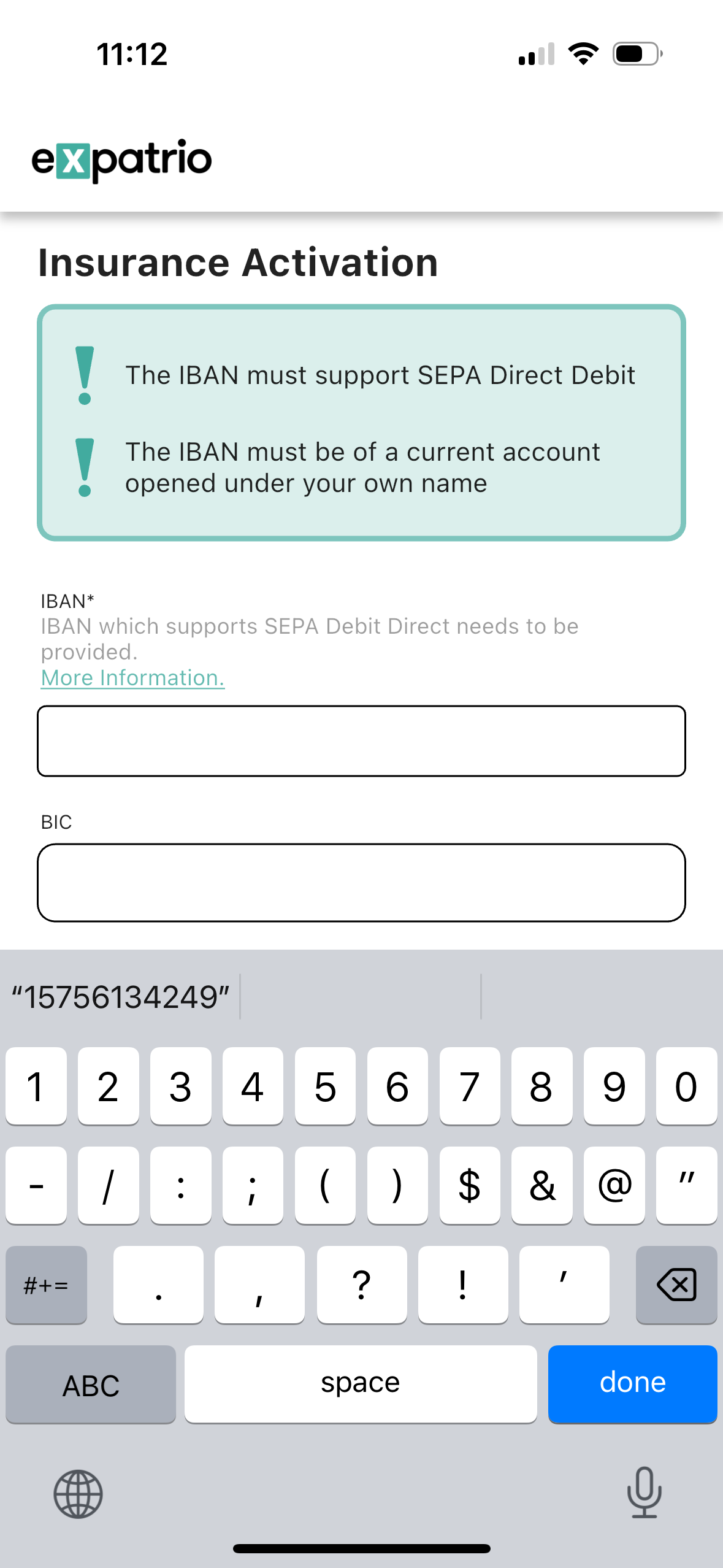 보험비가 빠져나갈 독일 계좌의 IBAN과 BIC도 적어줍니다. (저는 이때 슈페어콘토를 활성화하기 전이라 expatrio의 일반 계좌도 아직 활성화되어 있지 않았기 때문에, N26계좌 정보를 적어냈어요)