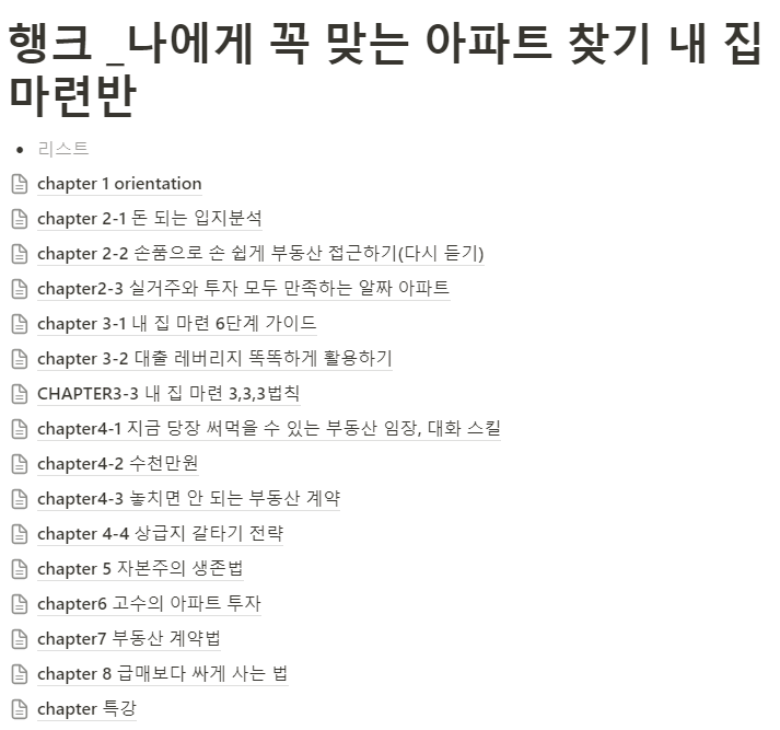 강의 수강자들에게는 위와 같은 자료도 주어져서, 첫 내집마련을 하는 사람들은 이 강의를 통해 체계적인 도움을 받을 수 있을 것 같다..!