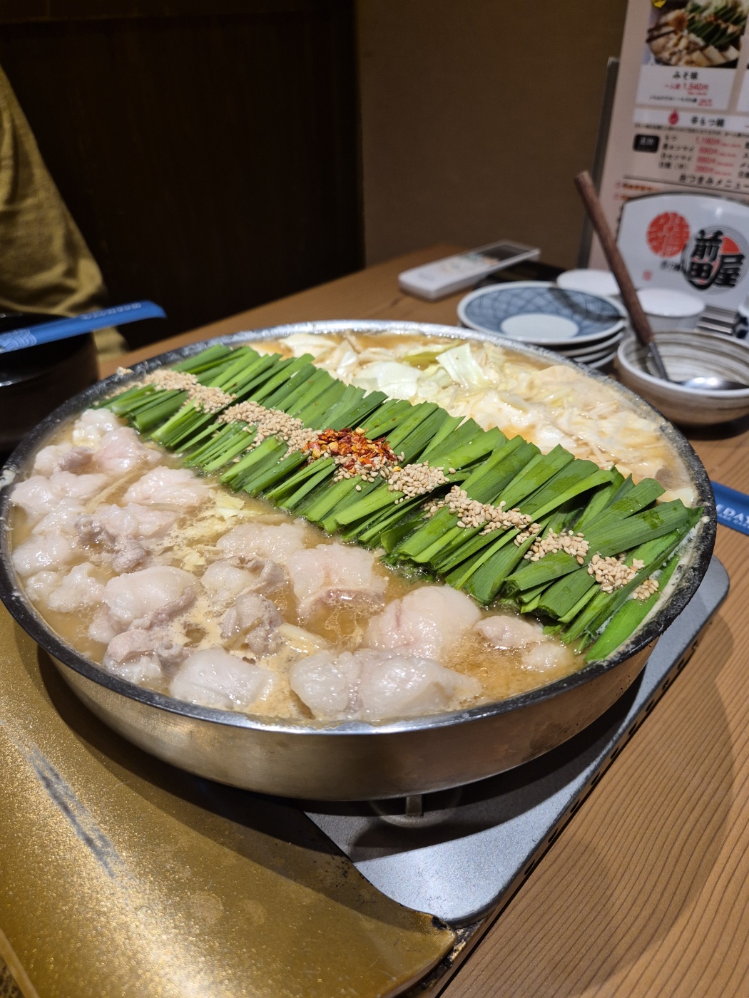둘째 날 숙소는 체크인이 15시 인데다가, 점심 식당 예약을 13시로 잡아놔서, 하카타 터미널에서 내리자마자 캐리어 끌고 예약해둔 식당으로 향했다.(도보로 10-15분 정도 걸림) '하카타 마에다야'라는 이름의 식당인데 모츠나베로 유명한 식당이라고 함. 미리 인터넷으로 예약을 추천하는 이유는 웨이팅이 많기 때문... 게다가 식당 내부도 생각보다 작아서 회전율이 느림...