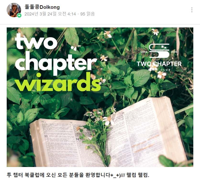 책 읽기 습관을 만들고자 몇년 째 구독중이었던 유튜브 돌돌콩님의 투 챕터 북클럽을 신청했다.